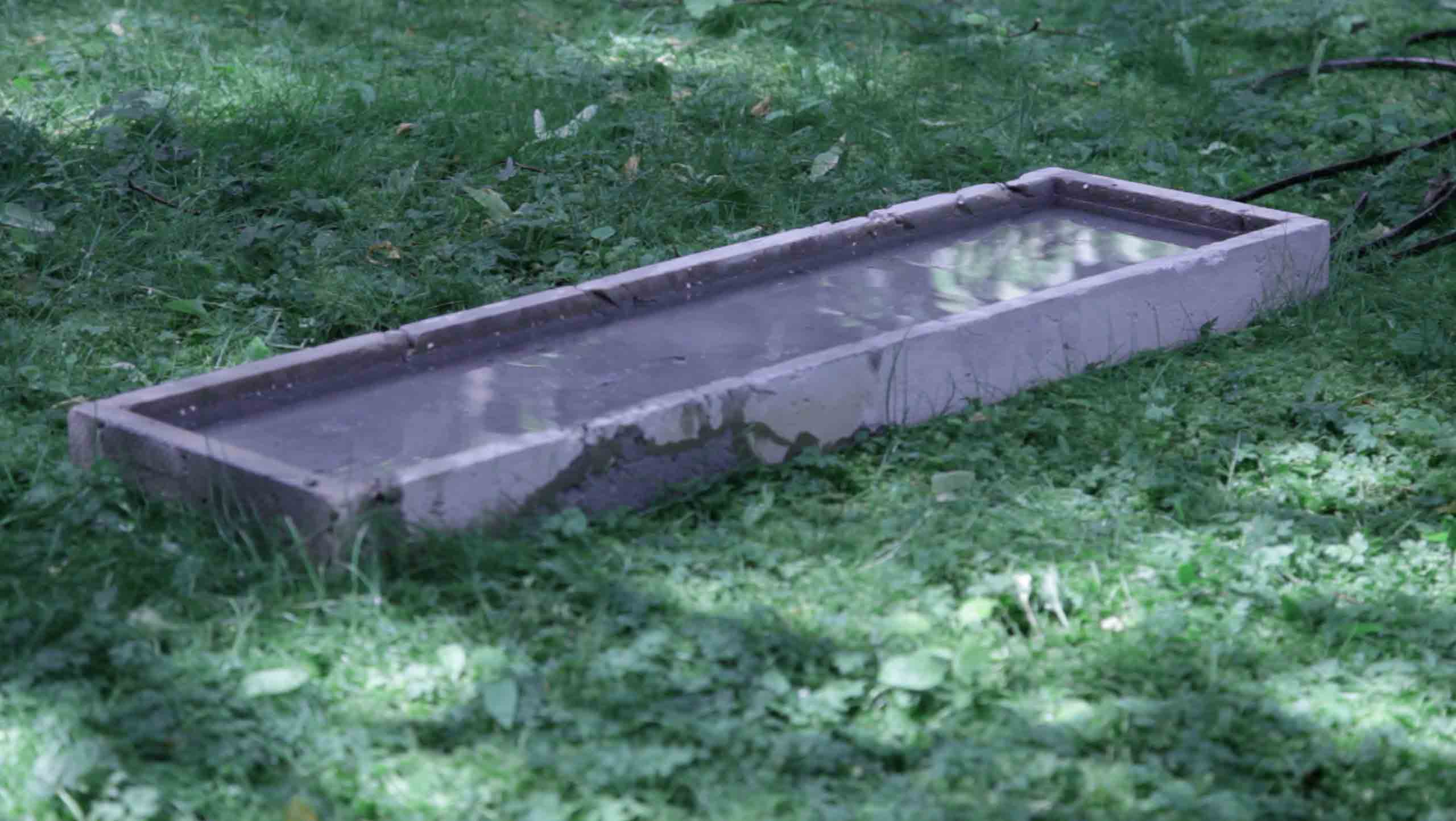 Die Wolke ist noch in der Mitte des Parks zu sehen. Die Kabel tauchen erst am anderen Ende der Parkanlage wieder auf. An einer Weggabelung kommen sie aus der Erde, schlängeln sich die Böschung hinab und schließen an ein längliches Becken an. Grober Beton zerschneidet das Tal gegenüber der Juristenstraße. Ein längliches, flaches Wasserbecken. (...) Manchmal eröffnet sich ein fast schon surreales Bild, Menschen sitzen im Becken und genießen das wärmende Wasser. Sonst ist es ruhig.«